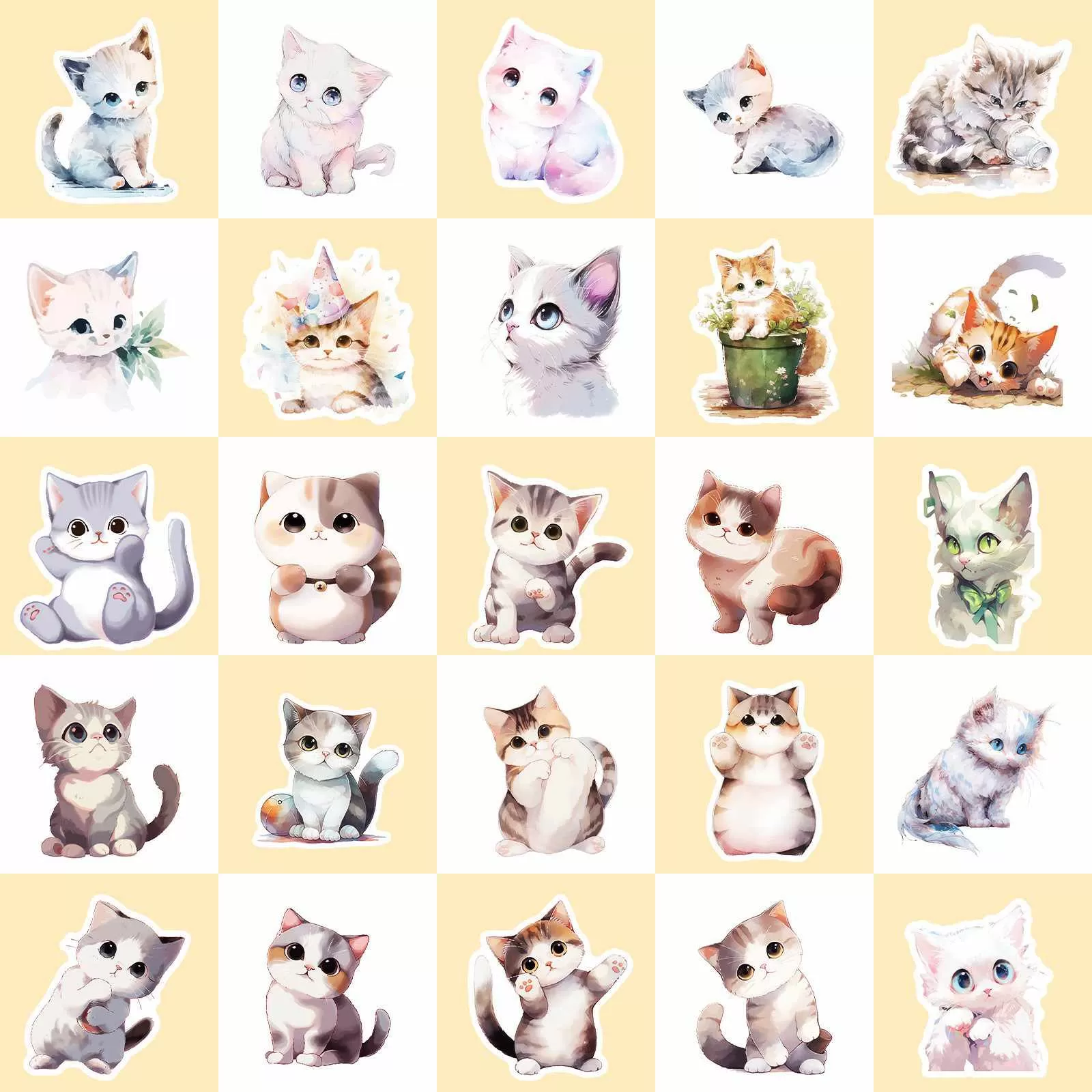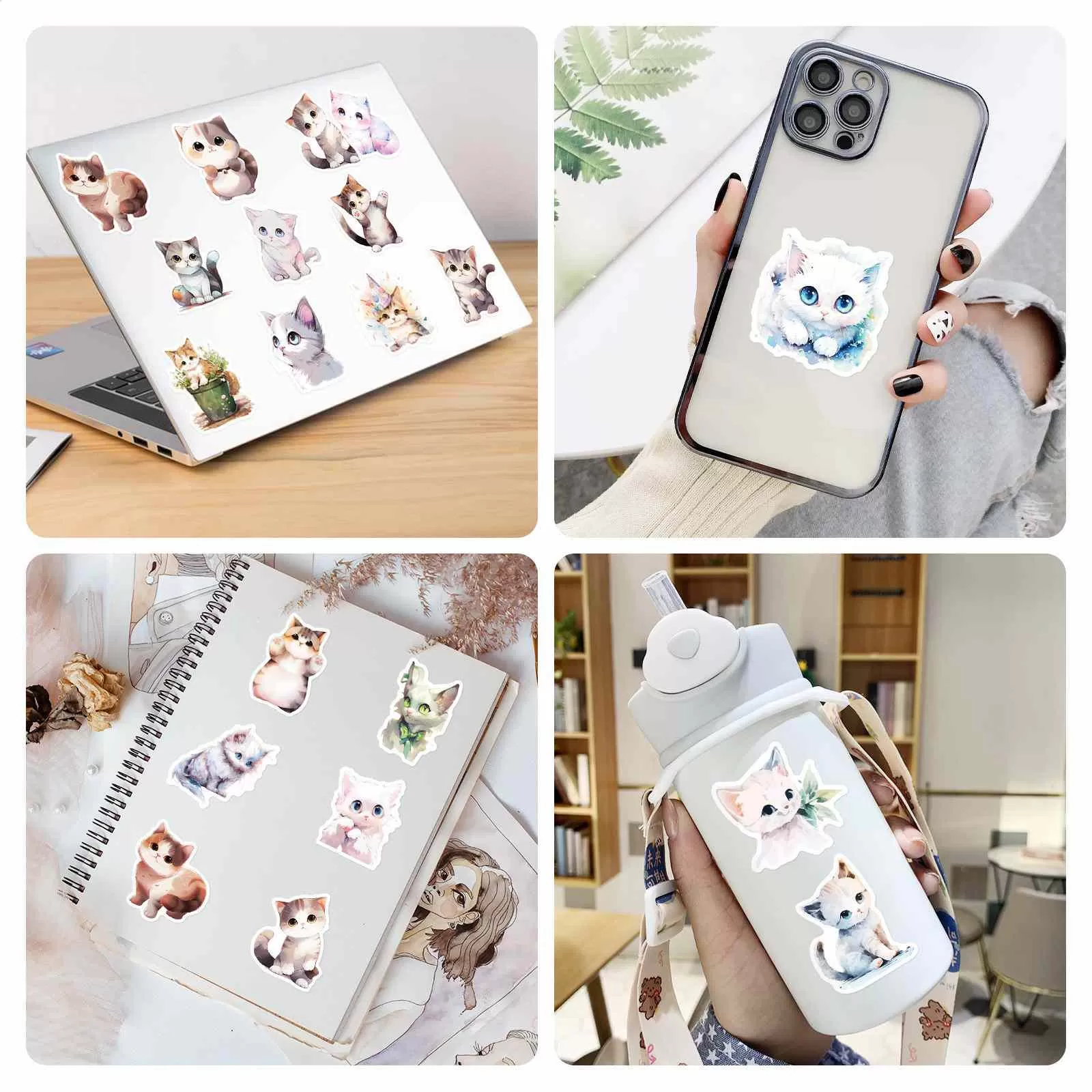 Design riche et matériau de qualité supérieure : Comprend 50 autocollants chaton mignons uniques dans un charmant style aquarelle et plante bonsaï. Fabriqués à partir d'un film PVC durable et imperméable, ces autocollants sont résistants aux rayures et ne se décolorent pas, assurant un dynamisme durable à vos effets personnels.