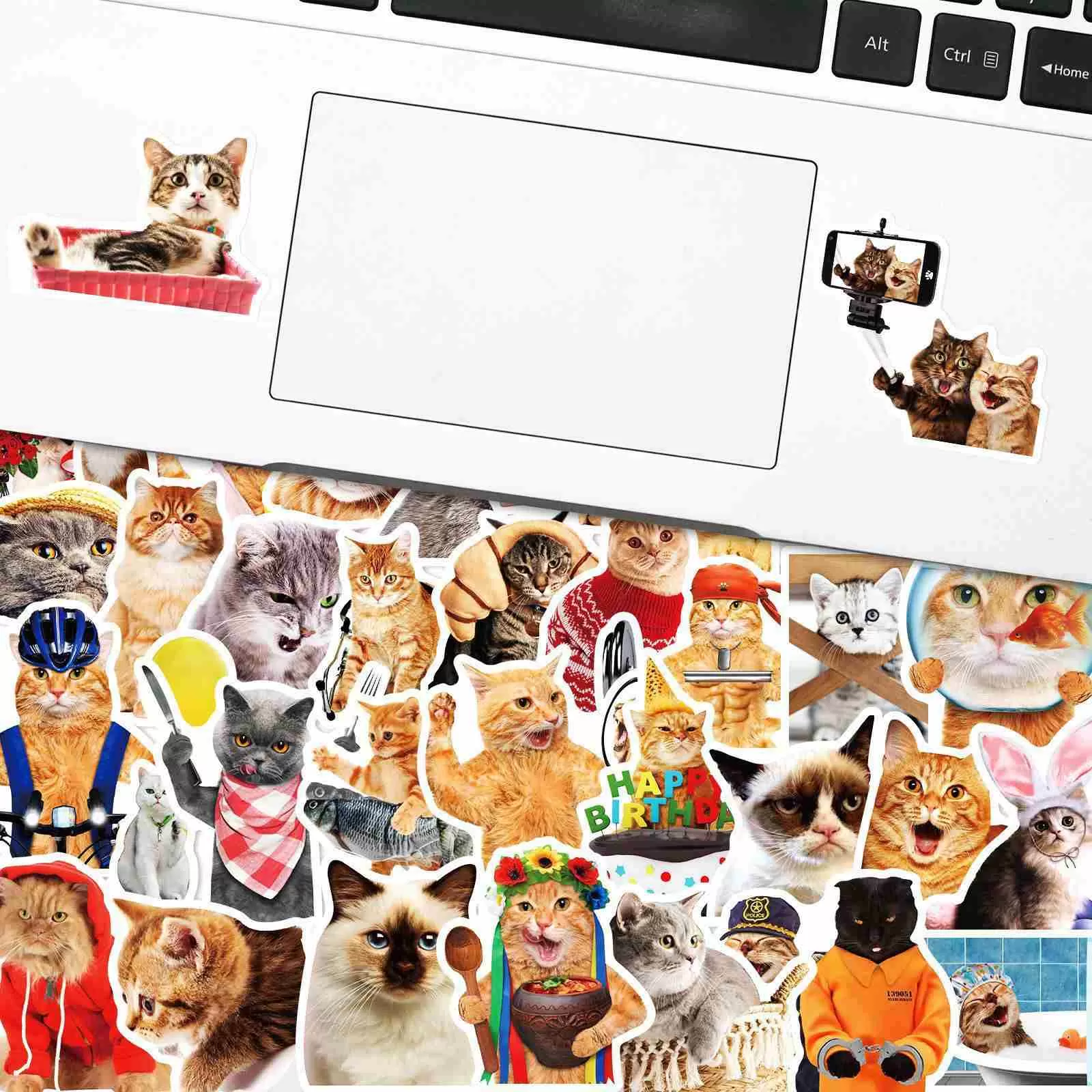 Jielen 50 autocollants de chat réalistes mignons, adorable pack d'autocollants d'animaux félins pour scrapbooking, journalisation, planificateur, ordinateur portable, décoration de bricolage