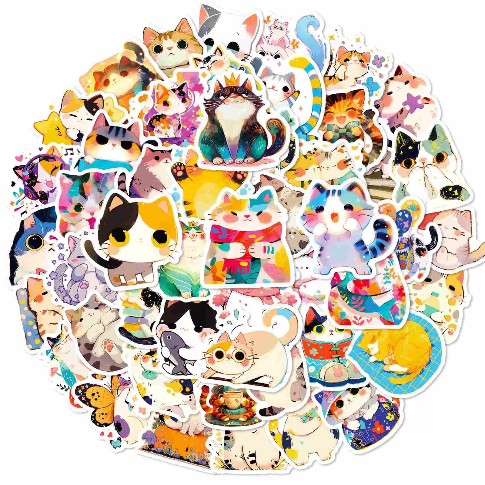 Valeur pratique du pack multiple : comprend 50 pièces d'autocollants assortis pour chats mignons de différentes tailles et designs, offrant une grande valeur pour les amateurs d'artisanat, les amateurs de papeterie et tous ceux qui cherchent à exprimer leur personnalité grâce à des accessoires vibrants.
