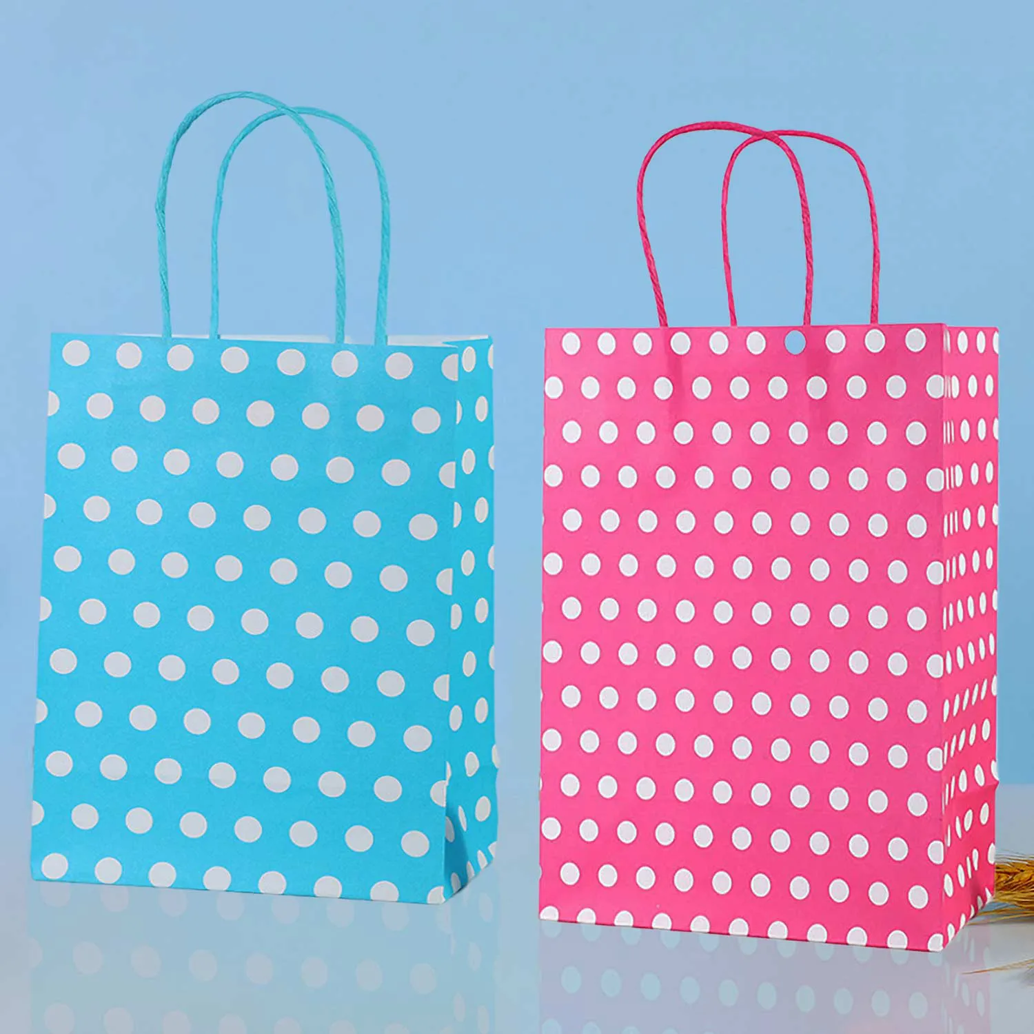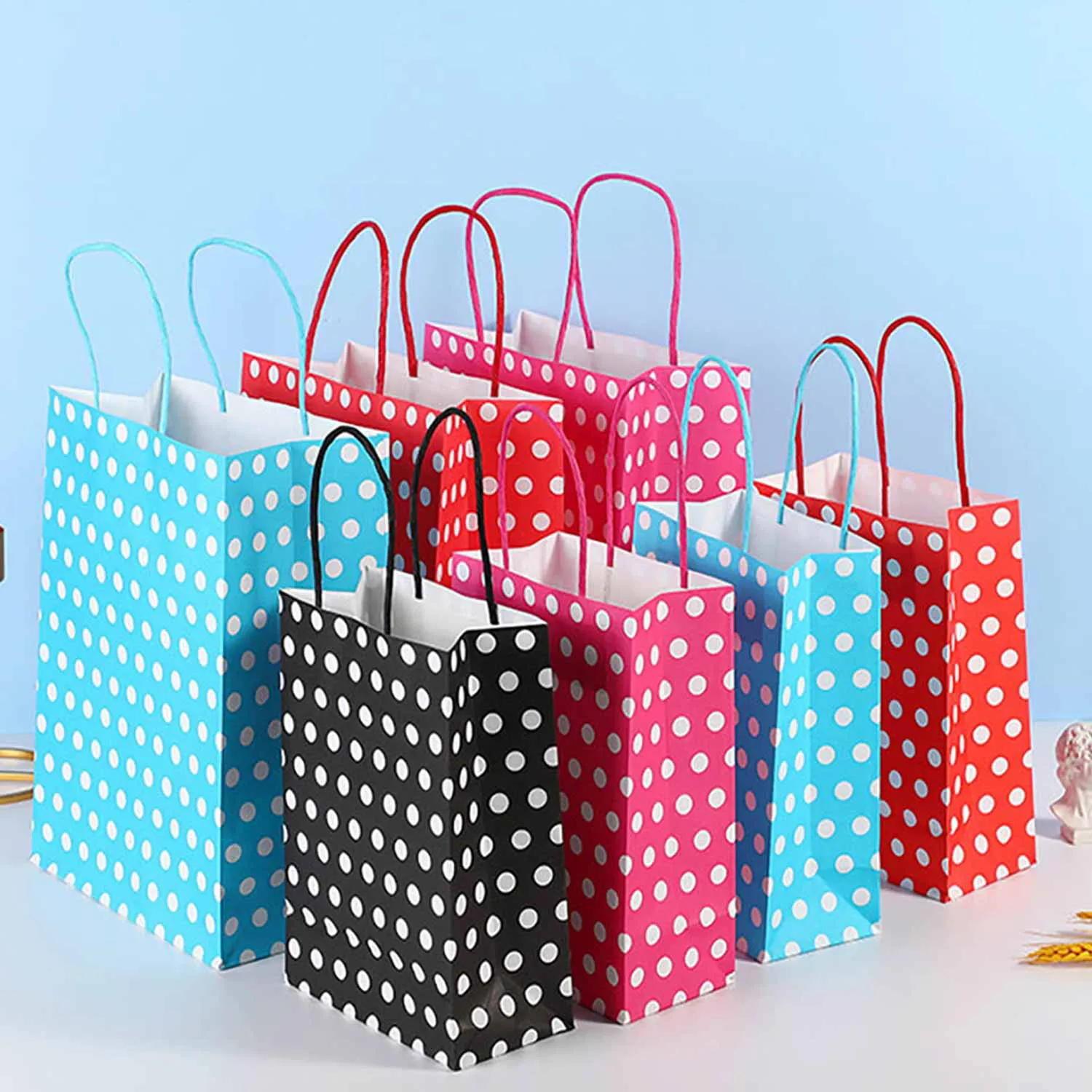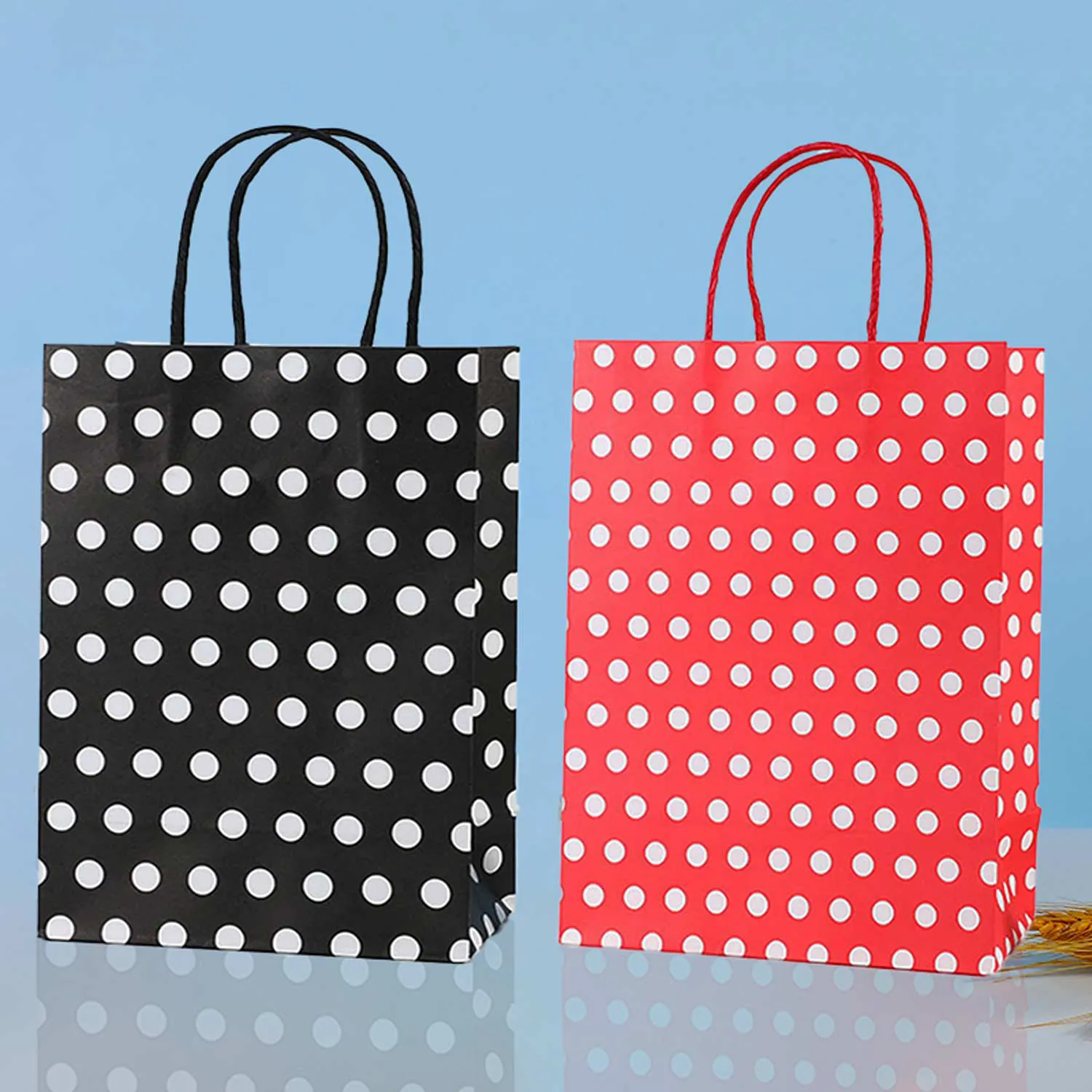 Emballage de sac cadeau à pois à la mode : Conçu avec un motif à pois à quatre couleurs, il y a 4 pièces dans chaque couleur, totalisant 16. Ce sac en papier présente une apparence élégante et accrocheuse, ce qui en fait le choix parfait pour l'emballage cadeau.