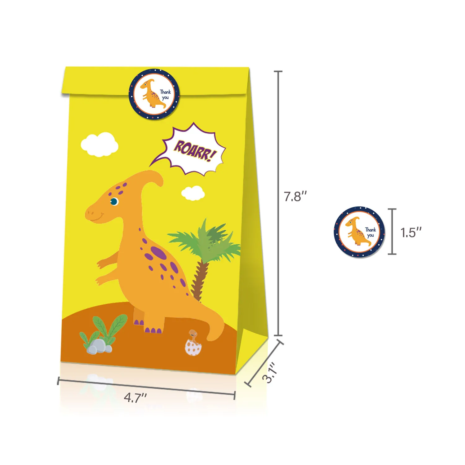 Taille de l'emballage : Ce sac-cadeau à motifs de dinosaures comprend 12 sacs en papier de styles différents et 18 autocollants pour la bouche, avec des dimensions de 7,8 "" X4,7 "" X3,1 "" (22X12X8cm).