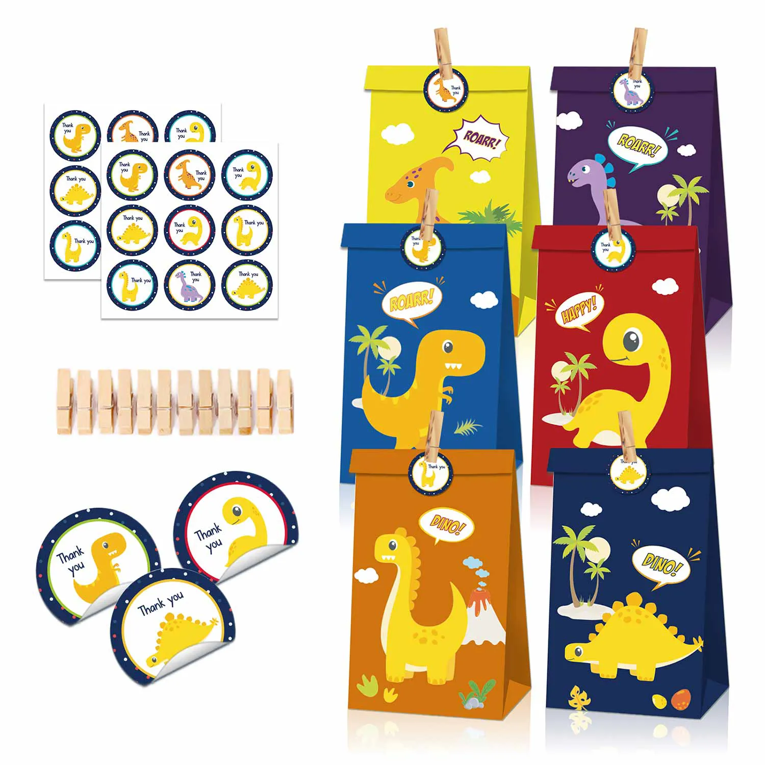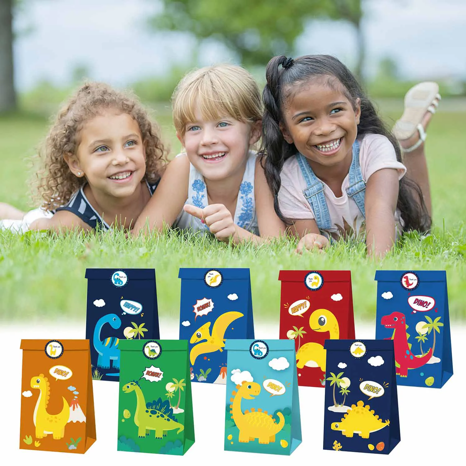 JIELEN 12 pcs sac cadeau motif dinosaure - sac cadeau de fête, sac à cadeaux, sacs à butin, sac en papier shopping, sacs en papier kraft, sacs à bonbons