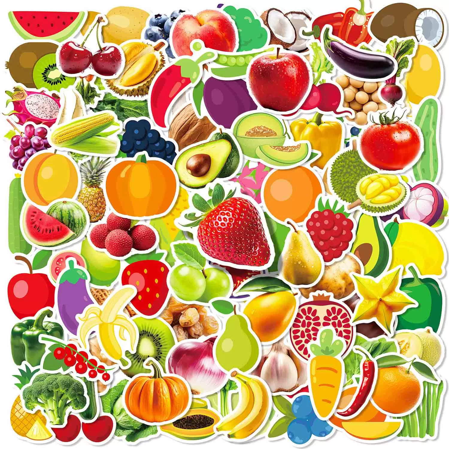 Jielen 100pcs autocollants de fruits, autocollants de légumes, autocollant graffiti, autocollant mignon pour réfrigérateurs, ordinateurs, planches à roulettes, bouteilles d'eau