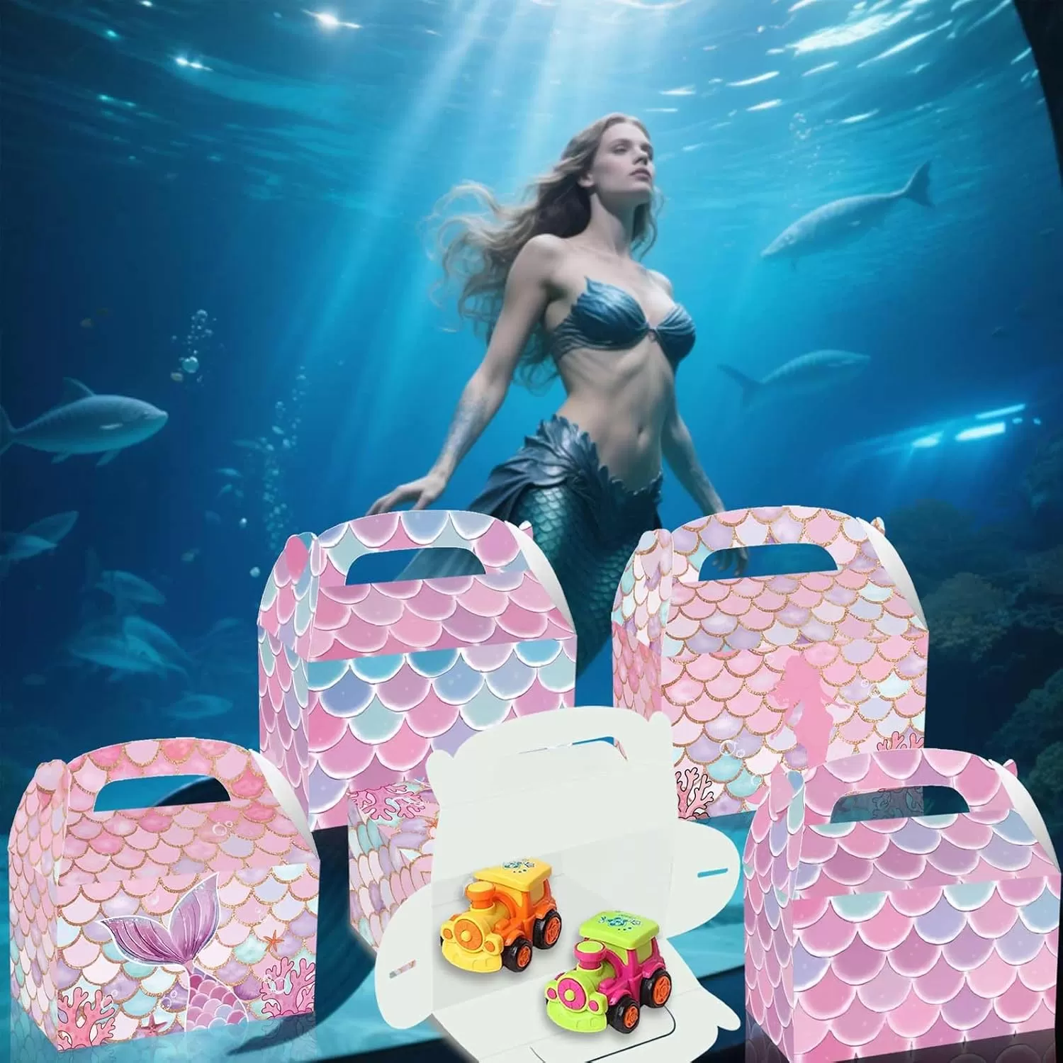 Boîtes en papier à motif sirène JIELEN 12 pièces, motif à l'échelle rose et bleue avec conception de queue, sacs-cadeaux, boîte-cadeau, boîtes en papier, petite boîte à cadeaux, boîtes-cadeaux en papier portables